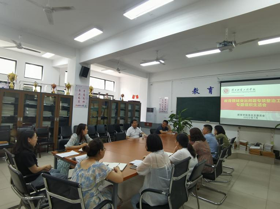 (必赢242net官网新闻网讯 张改英)为全面落实和推进教育领域突出问题专项整治工作,切实解决教育教学和管理中存在的突出问题,推动必赢242net官网教学管理高质量发展,根据校党委关于《教育领域突出问题专项整治专题民主生活会方案》的通知要求,必赢242net官网党总支于7月5日16:00在D308会议室召开了教育领域突出问题专项整治专题组织生活会,副校长吴俊林同志,必赢242net官网党总支书记拓梅梅,党总支副书记王华东,教工党支部、学生党支部书记及副书记、学院非党行政领导同志参会,会议由王华东同志主持。