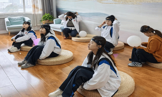 在团体心理辅导室,同学们参与了一场别开生面的心理健康互动体验。大家佩戴专业设备,尝试通过调整呼吸和意念来控制设备,亲身体验了生物反馈技术在心理放松与情绪管理中的神奇作用,不少同学表示这种体验让自己对心理调节有了全新的认识,也对自身的心理状态有了更清晰的认识。