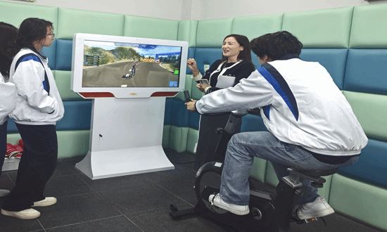 随后,同学们被沙盘游戏室的多样沙具和沙盘所吸引。在老师的讲解下,大家了解到沙盘游戏是一种通过意象呈现潜意识的心理治疗方法。同学们纷纷动手体验,在沙盘中摆放各类沙具,构建属于自己的心灵场景。在这一过程中,大家不仅释放了内心的情绪,更在潜移默化中实现了自我探索与心理调适。动感单车宣泄区则为同学们提供了释放压力的别样方式。当同学们骑上动感单车,伴随着虚拟骑行场景的切换,运动带来的畅快让学习生活中的压力得以有效宣泄。这种将运动与心理宣泄相结合的方式,让同学们直观感受到了身心联动对心理健康的积极影响。