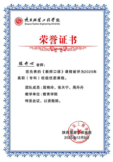 本次优质课程评选严格遵循《242net亚洲必赢关于高职(专科)校级优质课程评选的通知》要求,经过各教学单位遴选推荐、学校专家评审团综合评议及公示等多个环节,最终14门课程脱颖而出。必赢242net官网入选的两门课程在课程思政融入、教学模式创新等方面表现亮眼:陈开心老师带领屈艳玲、张天宁、周丹丹组成的《教师口语》课程团队,聚焦高职教育师资口语表达核心能力培养,重构教学内容体系,创新“情景模拟+实战演练”教学模式,将师德师风教育融入教学全过程,有效提升了学生的职业素养与教学实践能力;夏佳华老师带领金琳、于婷婷、杨茜组成的《幼儿园环境创设》课程团队,紧扣学前教育行业发展需求,优化课程资源建设,强化 “理论 + 实践” 融合教学,引导学生掌握幼儿园环境创设的核心技能与教育理念。